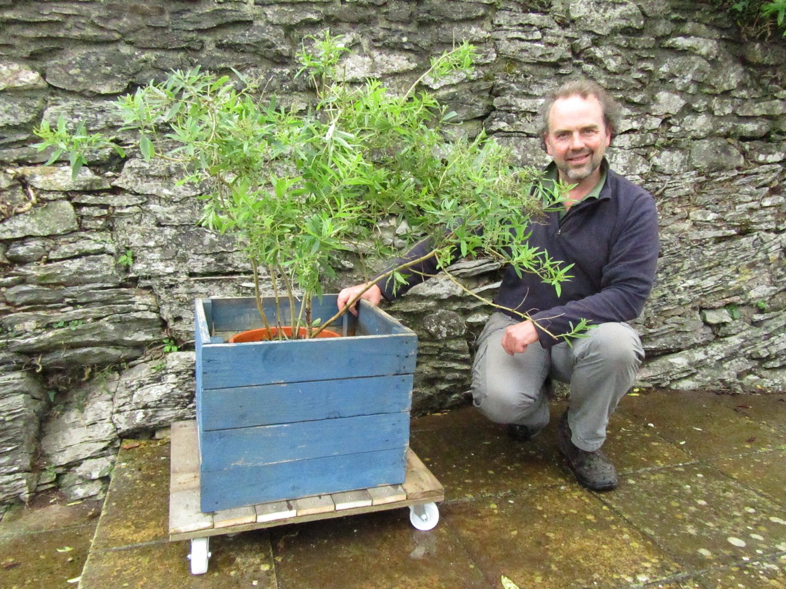 This month Simon makes a moveable platform for plants in containers and makes a cranberry hanging basket.