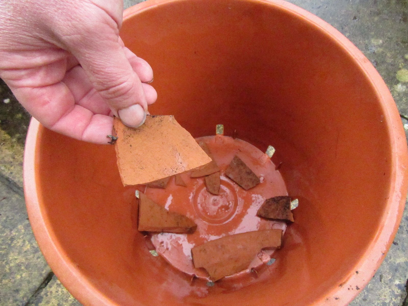 Place your container on top of the platform and add drainage such as polystyrene or crocks in the bottom. Make sure there is a drainage hole.