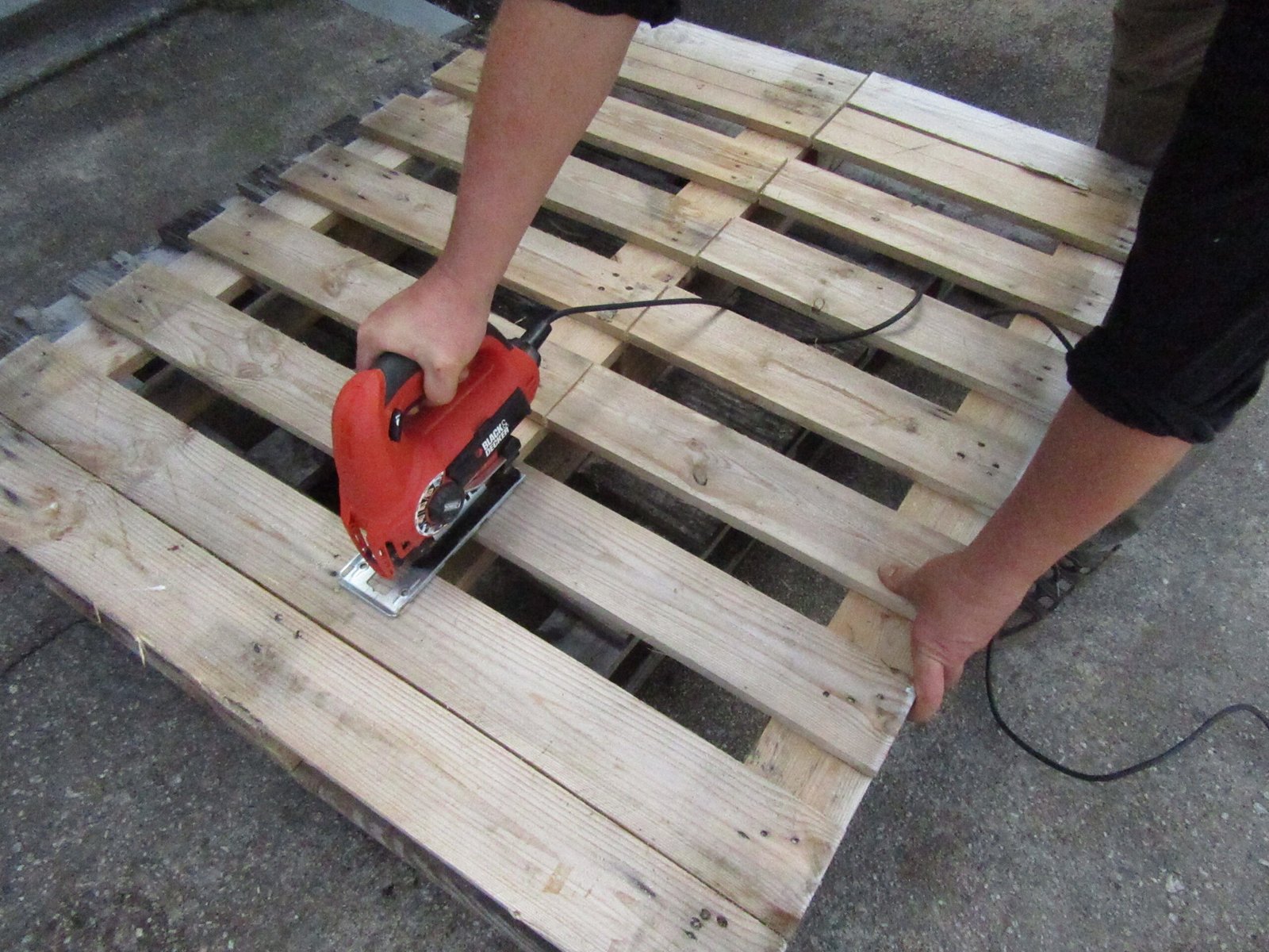 Start to build your first bay by placing a pallet on its lengthways side at the back. Take time to get it level, as otherwise the other pallets won’t but up flush to it.